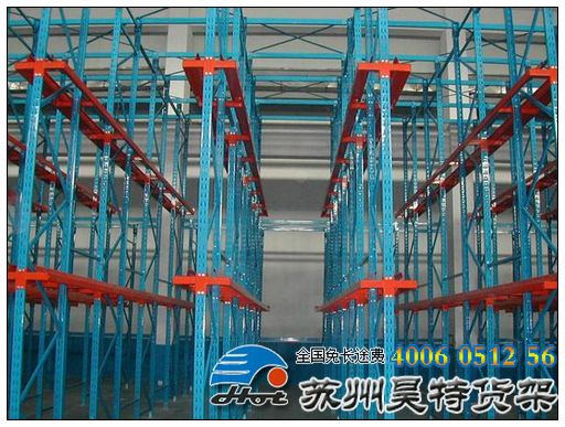 驶入式货架是采用格构式立柱边续方式连接起来的多门式、托盘单元化货品沿深度方向一个紧接一个存储在悬臂梁上的货架结构形式。这种货架结构形式可使叉车作业通道和货品存储空间共用大大提高了仓库的空间、场地面积利用率,但同一作业通道内的货品不能做到先进先出,适合于大批量、少品种或作业通道内的货品一起流向同一客户的货品存储,如饮料、乳制品、烟草低温冷冻仓储、标准规格的家电、化工、制衣等行业;驶入式货架可以达到最大的存储密度,空间有效利用率最多可提高到90%,场地面积利用率可达60%以上!