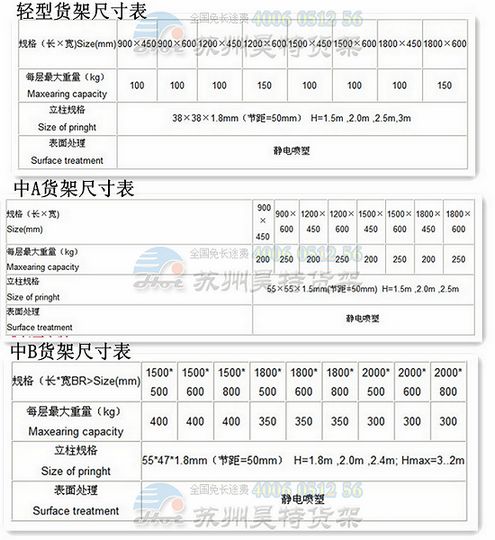 ,将部分货架的尺寸规格,整理参数表,提供大家参考!